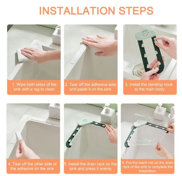 این توری به خوبی آب و فاضلاب پسماند های غذایی را از زباله جدامیکند و پسماند خشک را برای دور ریزی آماده میکند. این فیلتر جنس خاص بسیارمقاوم و انعطاف پذیر قابلیت تحمل بالای وزن زباله را دارد. همچنین یک استند چسبان با طراحی خلاقانه و مینیمال دارد که با زاویه 90 درجه در گوشه سینک های مختلف میتوانید نصب کنید. این فیلتراستند دار همراه بسته 50 عددی فیلتر ارسال میشود. حتی از این توری میتوان برای آبکش کردن انواع موادغذایی شسته شده و پخته شده نودل ها ، سبزیجات ، ماکارونی ، برنج و... بسیارمناسب میباشد. برای نصب این استند کافیست دو چسب که به صورت نواری و مستطیلی همراه بسته ارسال میشود ابتدا به سینک متصل کنید و سپس استند را روی آن نصب کنید.